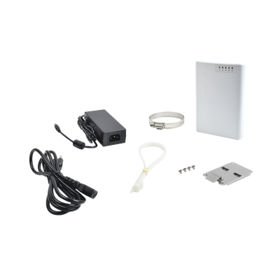 El PowerBox es un router para interperie de cinco puertos Ethernet, PoE en cuatro puertos. Se puede utilizar este dispositivo para suministrar energ铆a a los cuatro dispositivos con capacidad PoE, tales como nuestro SXT u otros.